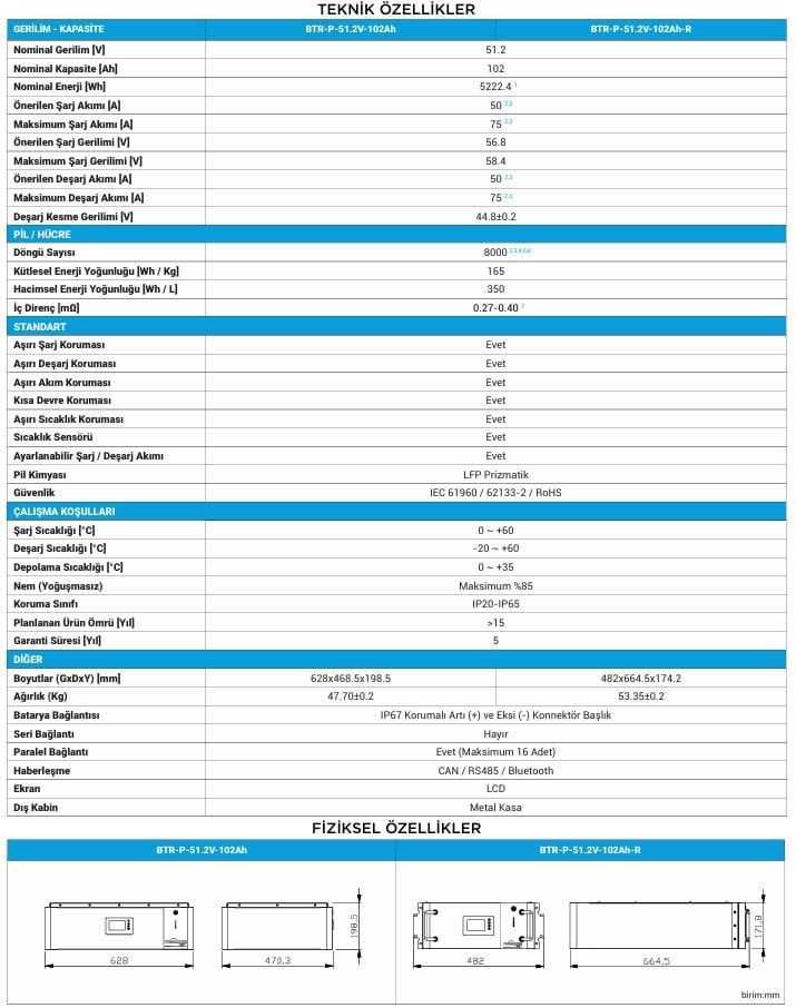 TOMMATECH MODÜLER SERİSİ 51.2V 100AH LFP LİTYUM BATARYA