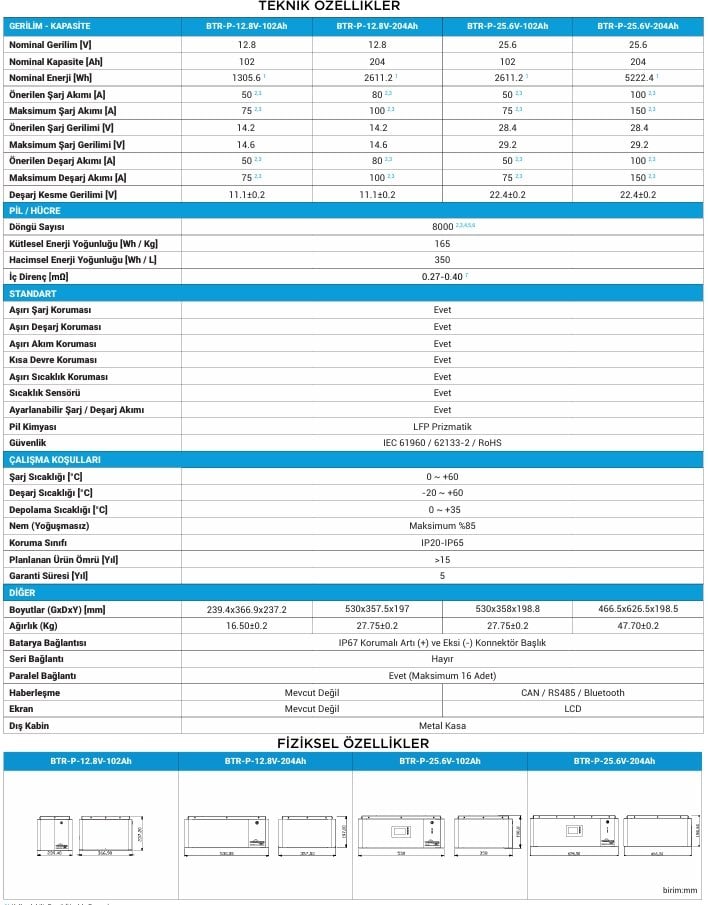 CAN / RS485 / Bluetooth (25.6V bataryalar için geçerlidir)